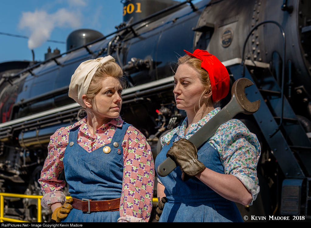 Reporting for work. A pair of Southern Railway engine shop employees prepare to start the second shift near the turntable in the East Chattanooga Yard. Locomotive service jobs were among the filthiest positions that were filled by female workers during the war years of the 1940s and clearly, these two ladies are under no illusion that when their shift ends later in the evening, they most likely won't look nearly as prim and proper as they do in this image.