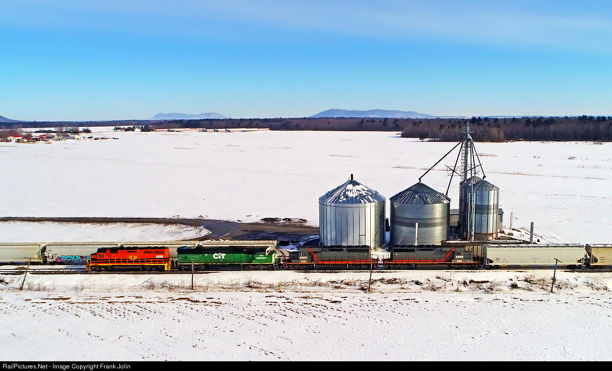 Detour St Lawrence & Atlantic is passing by Grains Choquette elevators as it heads north toward Montreal.