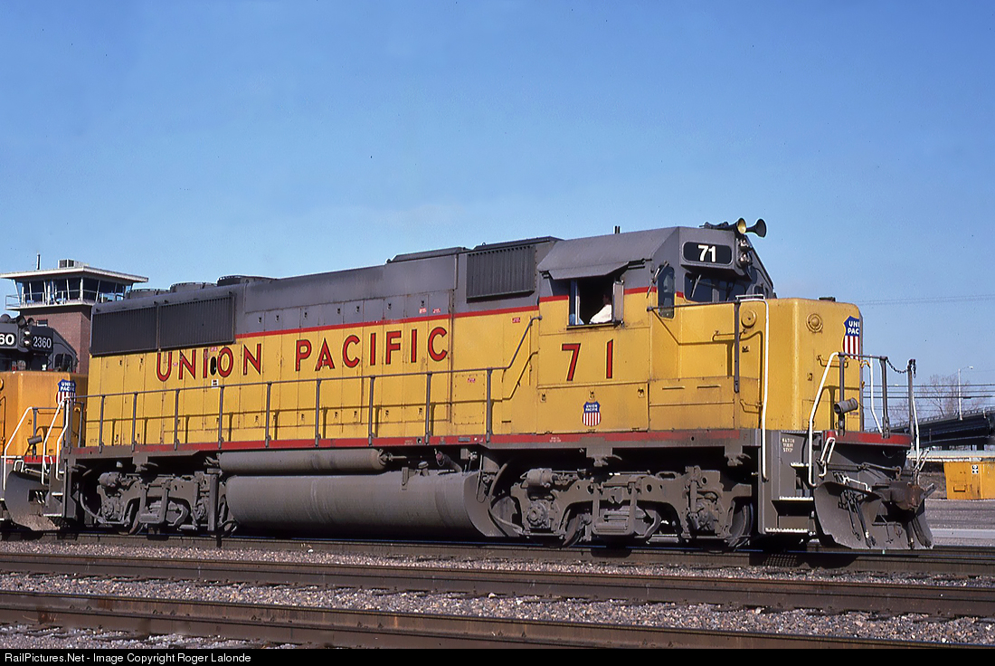Union Pacific GP50 renumbered from Missouri Pacific 3521 to UP 71 April 1988.