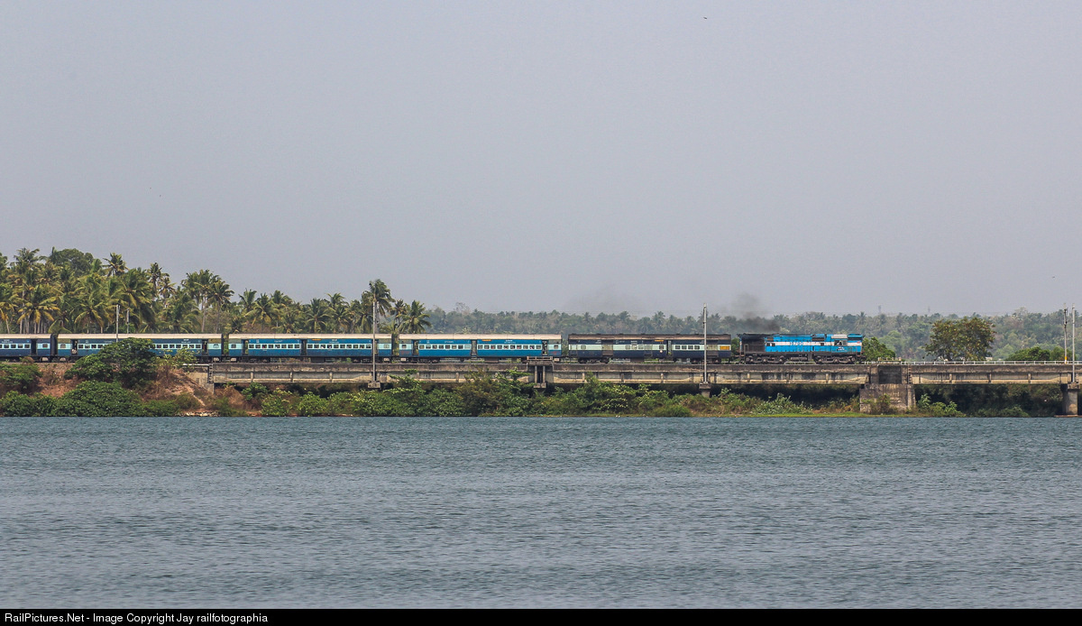 VATVA WDM-3A, built in 1997, covering a distance of 2720 kms from Porbander to Kochuveli, slowly crossing Kilimukkam lake