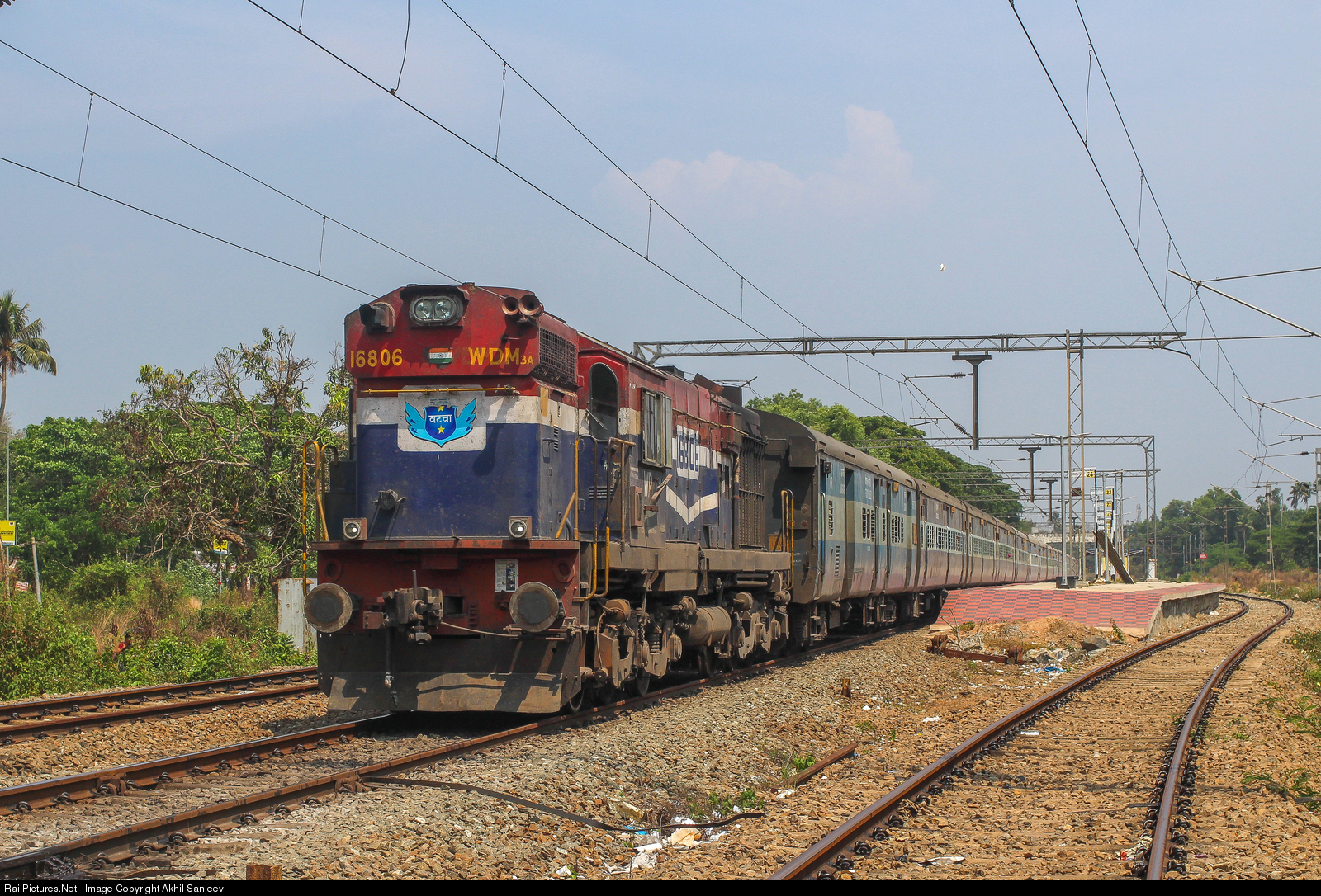 RailPictures.Net Photo: 16806 Indian Railways WDM-3A at Cherthala, India by Akhil Sanjeev