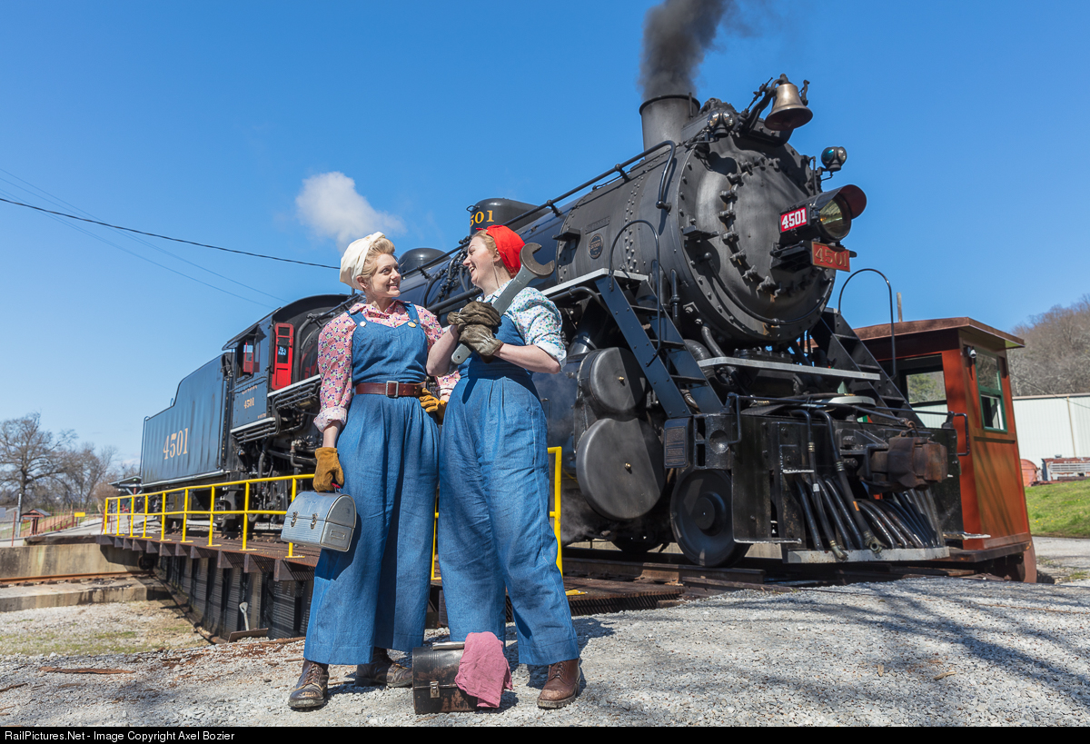 Two "Rosies" are ready to service the Southern Mikado engine #4501 (built by Baldwin in 1911) on the turntable in the East Chattanooga Yard. A great Lerro Productions charter together with the Tennessee Valley Railroad Museum.