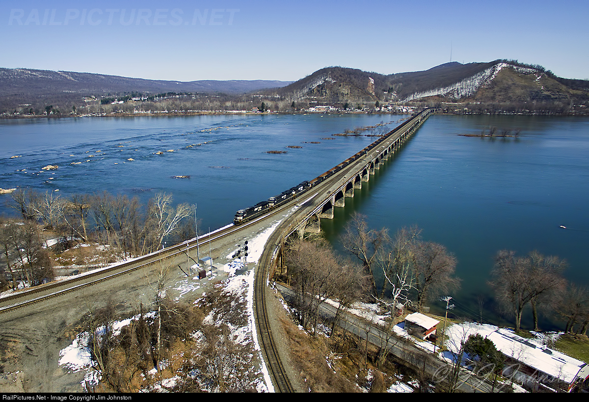NS 60N slab train crosses the Susquehanna River over the famed Rockville Bridge on a beautiful morning.