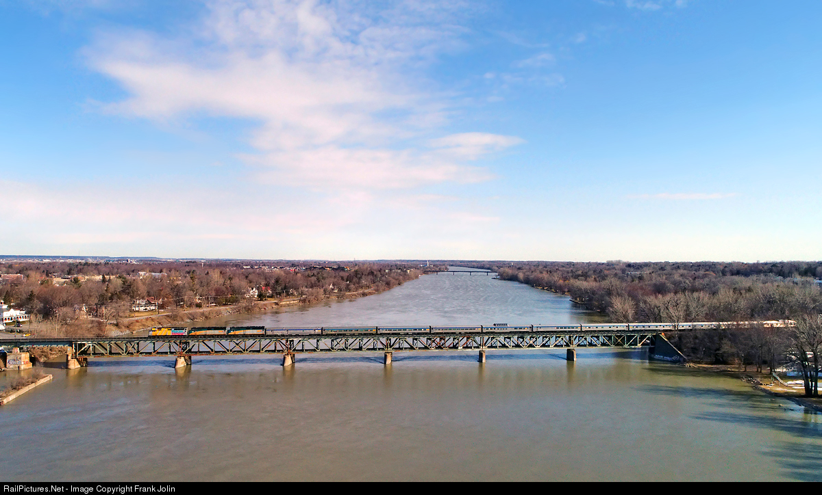 VIA Rail No 15 Ocean is crossing the Richelieu River as it approaches its final destination Montreal's Central Station on a fine spring morning.