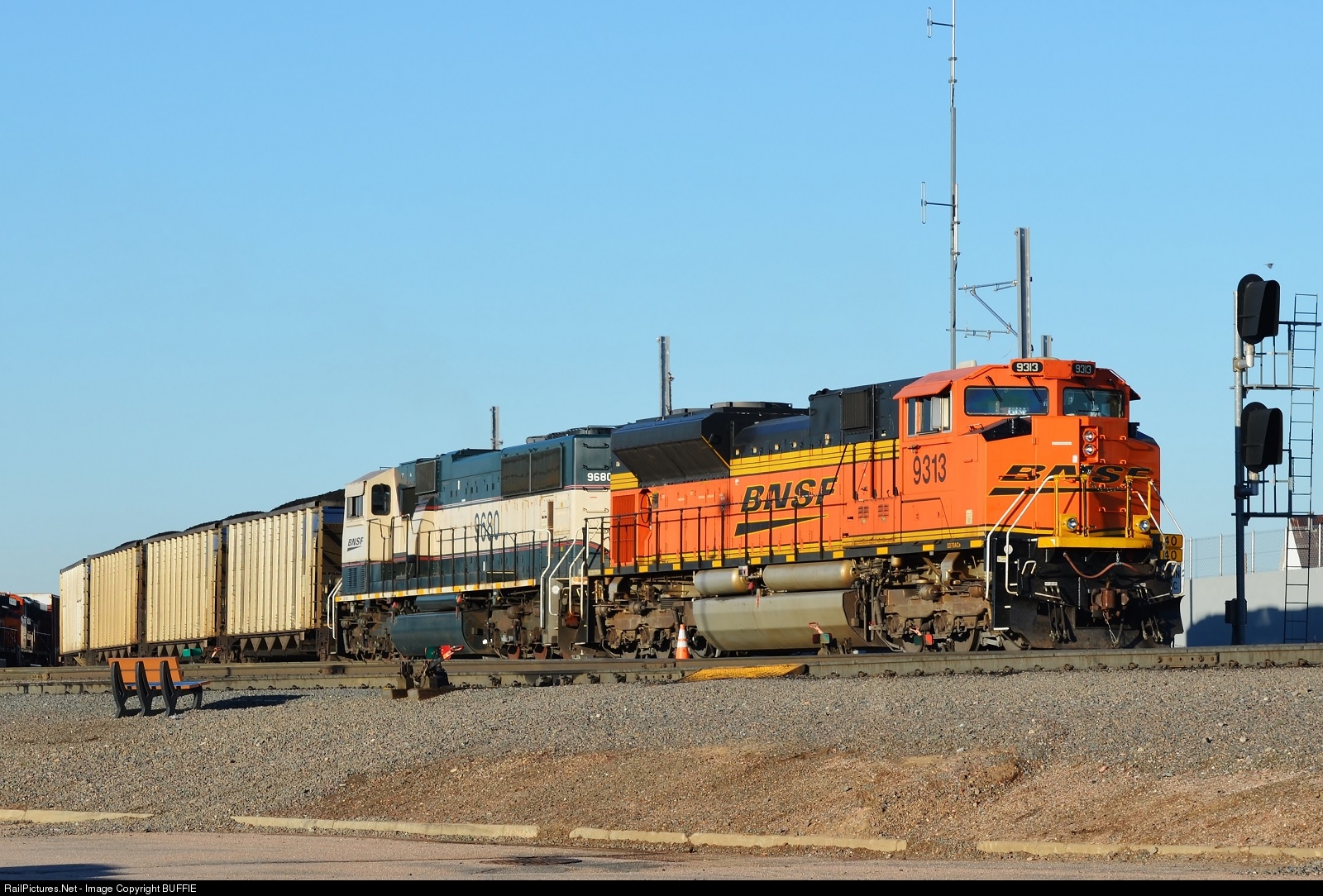 | It's god to see the Executive MAC's running coal again along the Front Range of Colorado. Here we see BNSF 9313 (SD70ACe) teaming up with MAC 9680 To pull a loaded freight through the Denver Yard. |