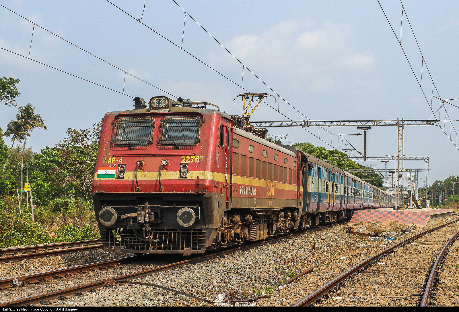 RailPictures.Net Photo: 22767 Indian Railways WAP-4 at Cherthala, India by Akhil Sanjeev