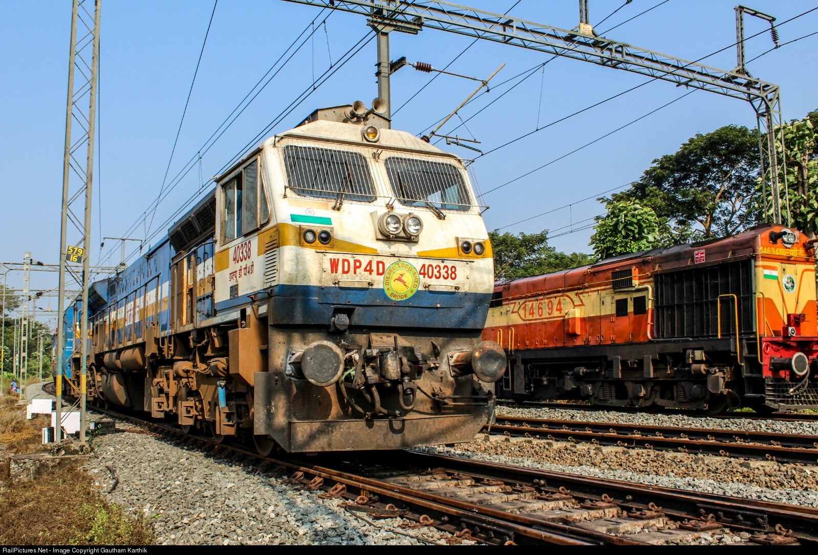 RailPictures.Net Photo: 40338 Indian Railways WDP-4D at Shoranur, India by Gautham Karthik