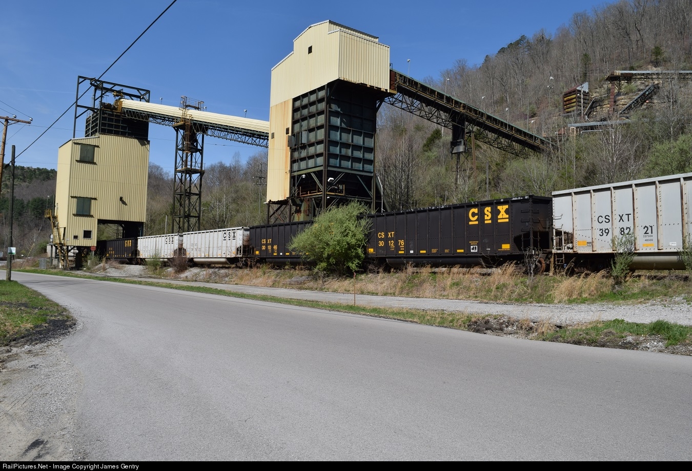 A depressing sight at this once thriving coal loadout, as CSX coal gons rust away.