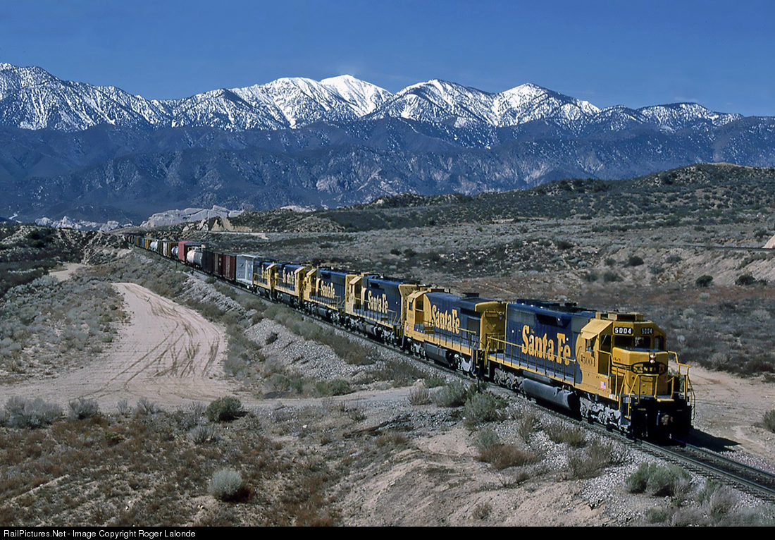 RailPictures.Net Photo: ATSF 5004 Atchison, Topeka & Santa Fe (ATSF) EMD SD40 at Cajon Pass, California by Roger Lalonde