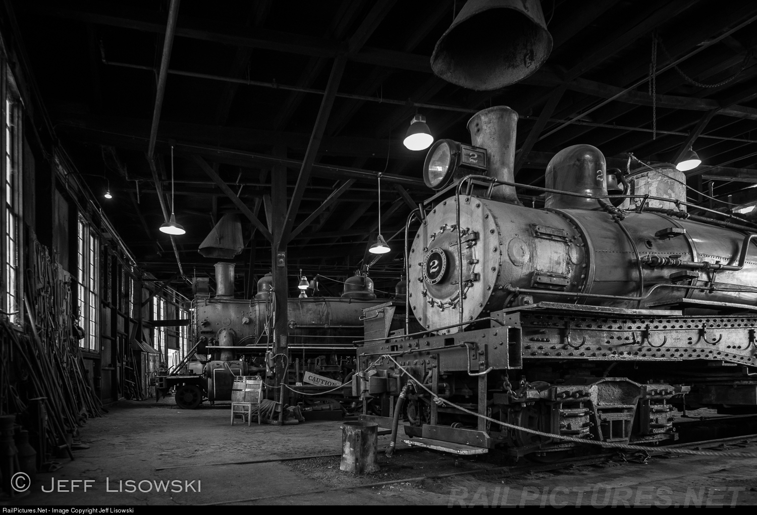 Sierra #2, a Lima product of 1922, rests in the roundhouse at Jamestown, CA.