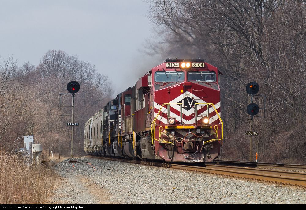 A well timed sucker hole opens up as loaded sand train No. 60E storms through the intermediates at CD 228 in the small community of Ceylon, Ohio with the Leigh Valley Heritage unit up front, looking sharp in the morning sun. These signals are some of the only ones on this part of the former NYC Waterlevel Route that are completely untainted with no signs of replacements anywhere nearby, which makes me think that they will just be removed, but not replaced, in order for a larger block to be formed.