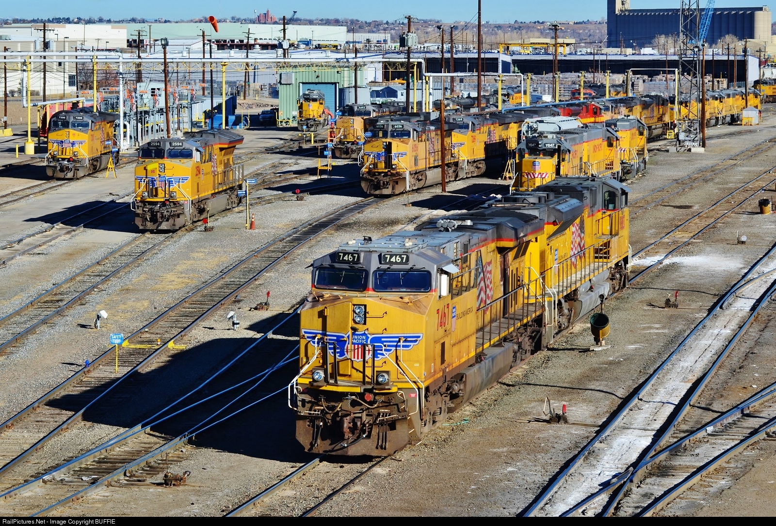 | The UP heavies are in the house. UP 7467 (ES44AC) joins a variety of other heavy units in the North Yard, waiting for either servicing or assignments. |