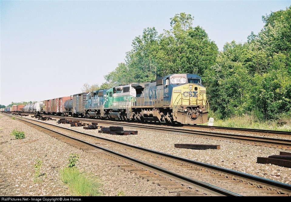 CSX westbound with C40-8W CSXT #7650, SD40-2 FURX #3013, and SD40-2 CSXT #8840.