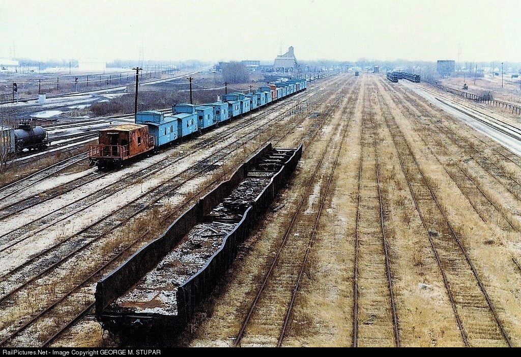 Indiana Harbor Belt Gibson Yard scene in 1984. View east from Indy Blvd nine span steel bridge.