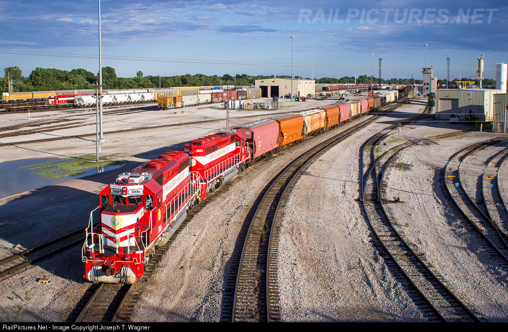 Staying occupied classifying railcars, a matched deuce of TRRA SD40 variants work Terminals' Madison Yard "Hump Job" on a beautiful mid-June evening. The Terminal Railroad Association of St. Louis, TRRA for short, is a switching line formed by Jason "Jay" Gould in the year 1889 originally designed to work the trains that arrived and departed St. Louis' busy Union Station. Today, the railroad owns six different subdivisions connecting them to all five of their class 1 owners throughout the city including the BNSF, UP, CN, NS and the CSXT with action centered here at Madison Yard. The railroad's solid fleet of EMD locomotives look quite attractive dressed in their red & white paint.
