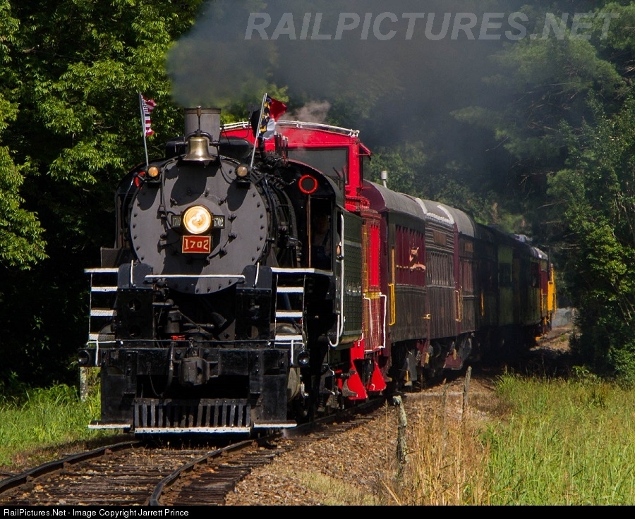 | GSMR 1702 passes through Inspiration Park in the community of Ela (EEH-LAH) on her way west to Bryson City with decent size Tuckaseegee River excursion consist in tow. |
