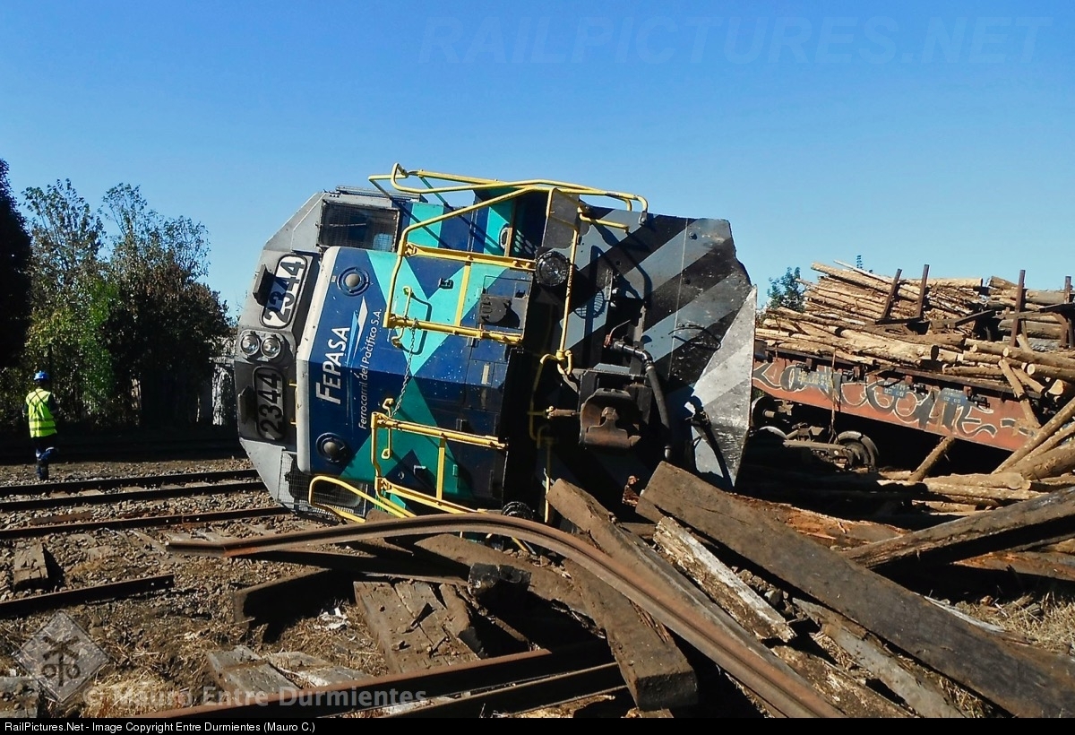 Serious railway accident in the commune of Freire, in the south of Chile. FEPASA train loaded with wooden logs derails when passing through the old state railways station, overturning the leading locomotive. Fortunately, the crew of the train was uninjured, there were no injuries, only material damage.