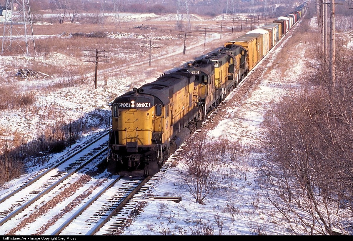 CNW 6704 approaches Butler Yard with train GBPRA in December of 1985. The big Alco's would occasionally depart from their usual iron ore duty in the UP of Michigan and venture to Milwaukee or Chicago with a road freight, much to the delight of those who enjoyed the ex-N&W beasts.