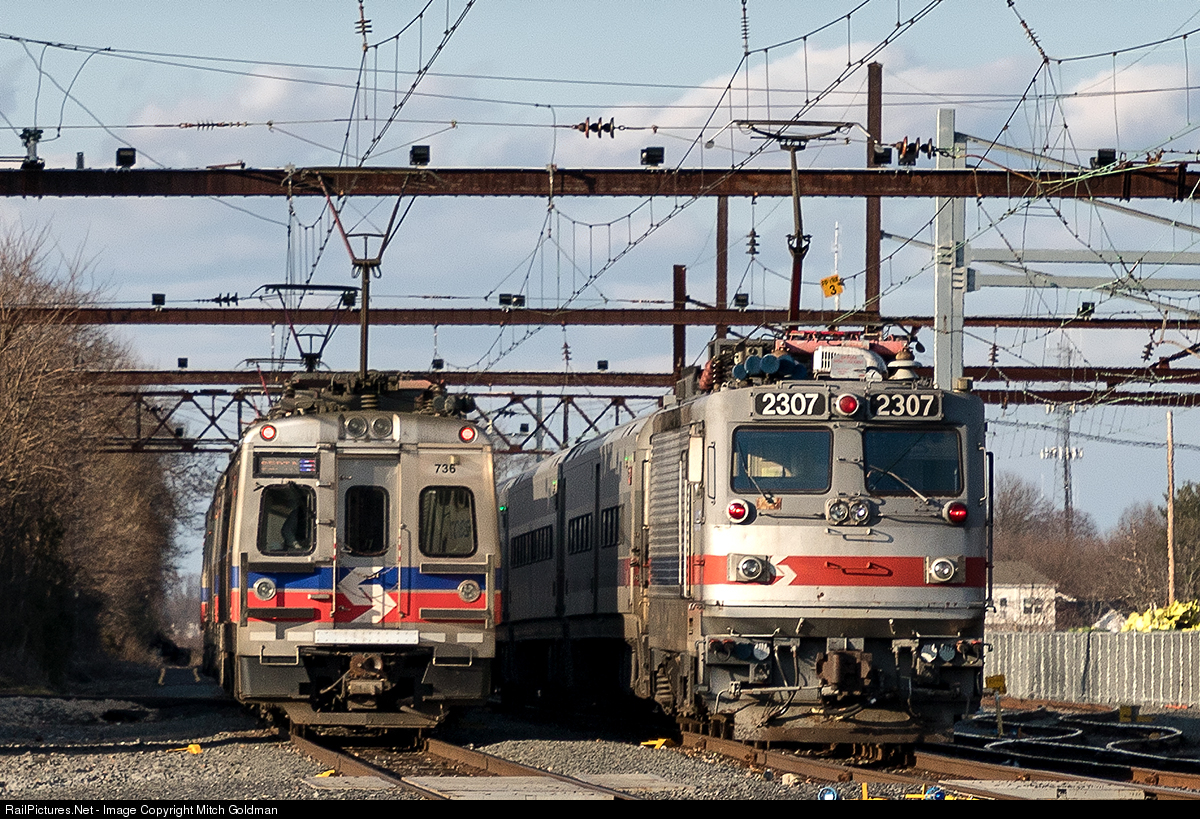 | A pair of SEPTA commuter trains sit on stub end tracks of the former Reading Company main to Newark and Jersey City. The sets have wrapped up operations for the day and will sit in what is now part SEPTA's storage yard until needed the following morning. CSX freight trains still ply the former Reading line into New Jersey, but now wrap around the yard to the right before rejoining what is mostly a single track ROW east bound into central Jersey. |