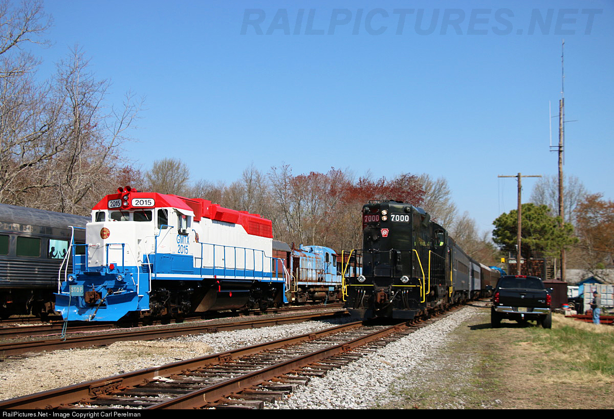 | The URHS Transportation Heritage Festival finds an assortment of Cape May Seashore Lines locomotives. The PRR GP9 7000 is pulling its train into the Tuckahoe, in preparation for the 10:30 a.m. passenger train. To the left is colorful GP38-2 2015 and antique RS3m 8481. |