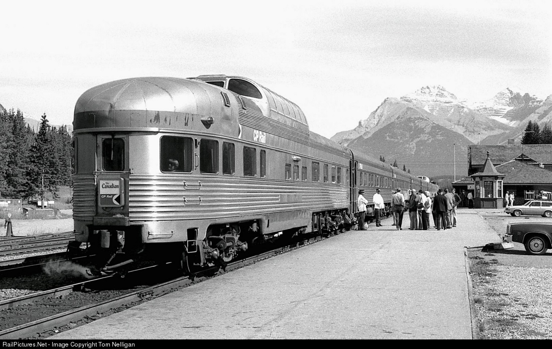 Back in the CP Rail era, the eastbound Canadian's scheduled ten-minute stop at Banff, Alberta, provided a chance for passengers to stretch their legs and photographers to jump off for a quick shot amid the mountains. I would not have guessed that day that 42 years later the classic Park cars and other CP equipment would still be carrying on for VIA.
