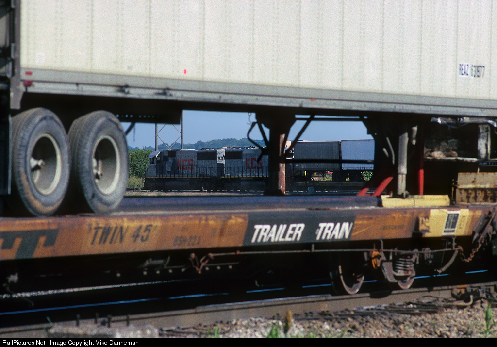 Kansas City Southern intermodal train No. 10 crosses the diamonds at Air Line Junction and heads around a curve for the railroad’s Joint Agency yard in Kansas City, on September 15, 1990.