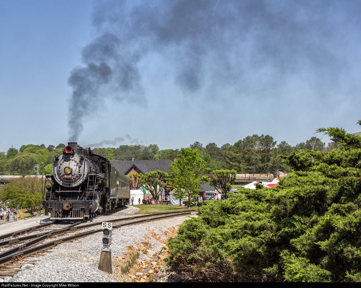 | There is always lots of train action around the TVRM Grand Junction station on weekends. Here, Southern #630 stomps up the "Y" to turn her train around while local NS freights head out of the NS East Chattanooga yard on the mainline next to Grand Junction. If you're a fan of trains you wouldn't mind this setting one bit! |
