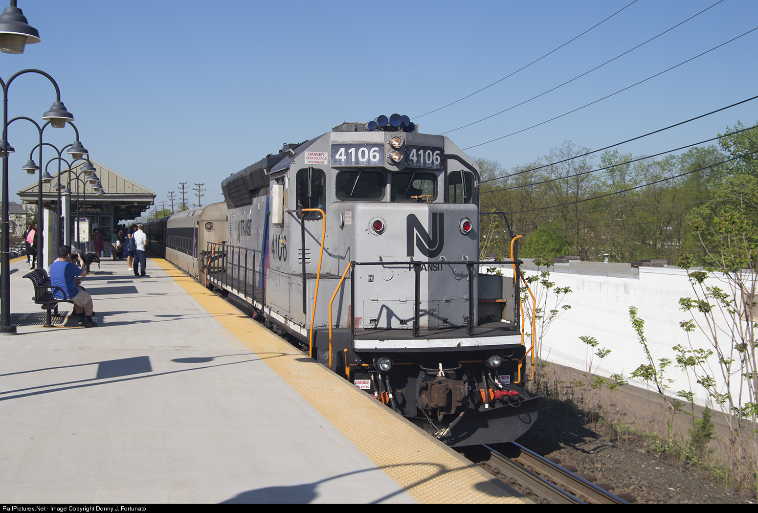 An ex-CNJ GP40PH-2 leads train 5902, a local train from Plainfield, into Union Station. The 4106 is one of a handful of refurbished GP40s on the NJT roster; these units have appeared on the east end of trains as "cab cars", as is the case in this photo, while NJT installs PTC in their Comet V cabs.