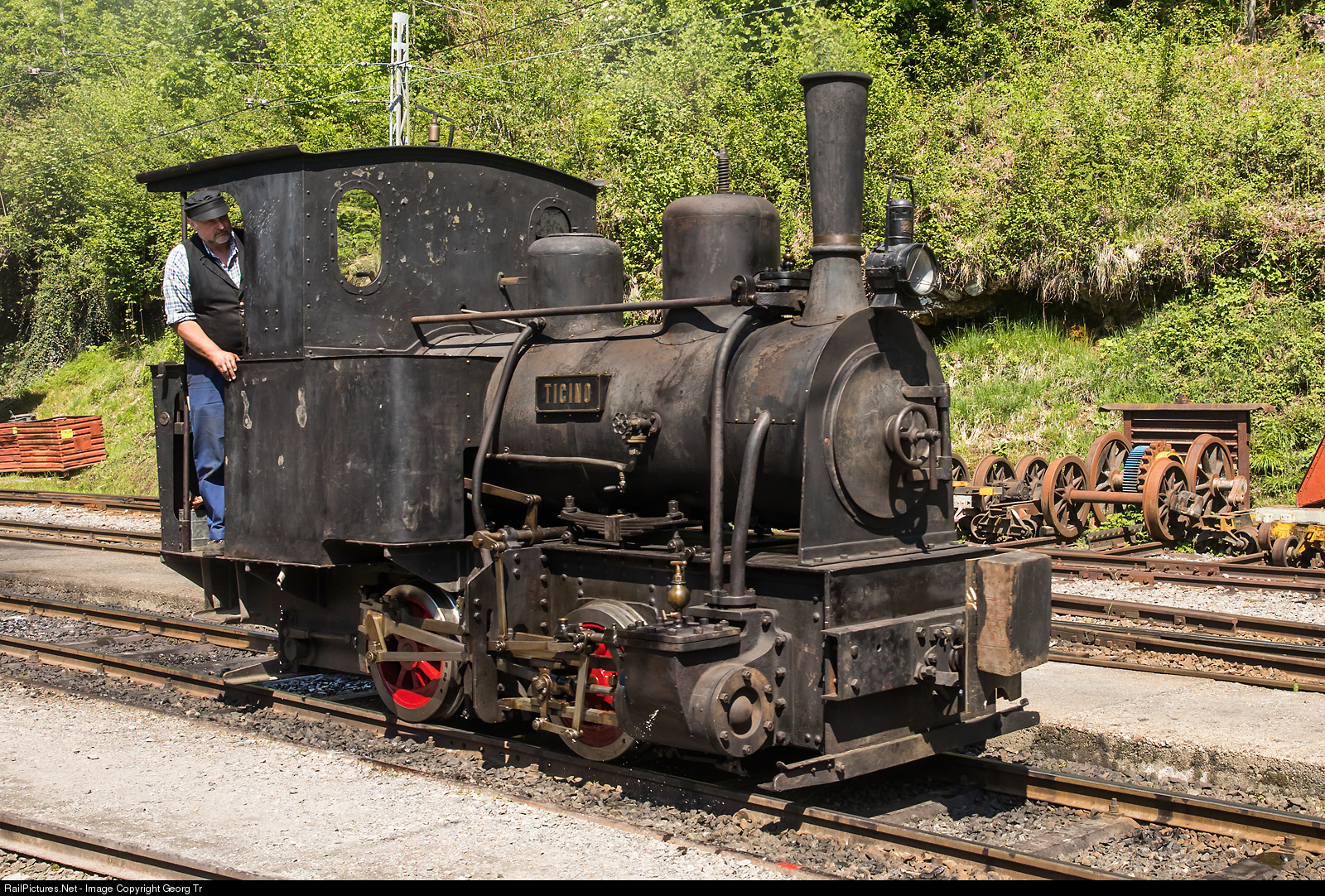 In 2018, the Blonay-Chamby Railroad/Museum is celebrating 50 years of operation. On this day, for photographers and filmers there was organized a "Mega Steam Festival" with 10 one meter gauge steamlocomotives. This is the little G 2/2 "Ticino", built in 1889 by Arnold Jung, Jungenthal bei Kirchheim/Germany, which was used for construction work for the Ticino river correction (Consorzio Correzione del Fiume Ticino), survived for 53 years in a basement of the Travaini family in Mendrisio and was made operational again in 2016 by experienced steam specialist Martin Horath (who is in the cab) in a few months. The locomotive is owned by Travaini family, loaned for operation to Martin Horath, Goldau.