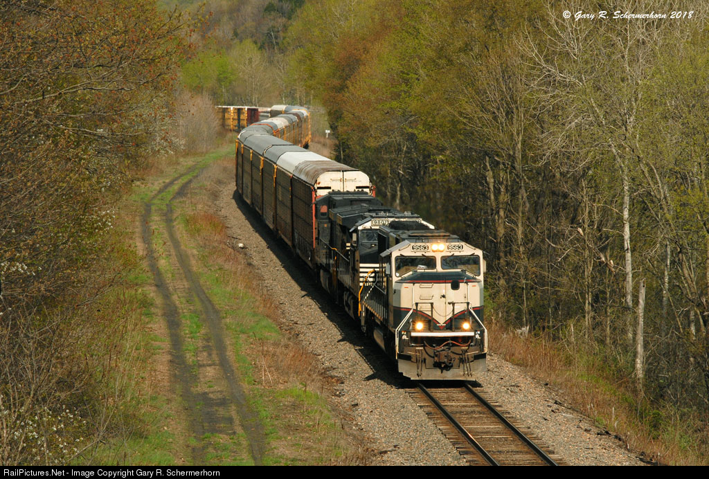 | After a recrew at Crescent, Pan Am 11R(CP 945) heads south from Richmondville Summit as it begins it's south west journey towards Binghamton with a nice white faced MAC leader today on a warm Friday afternoon. |