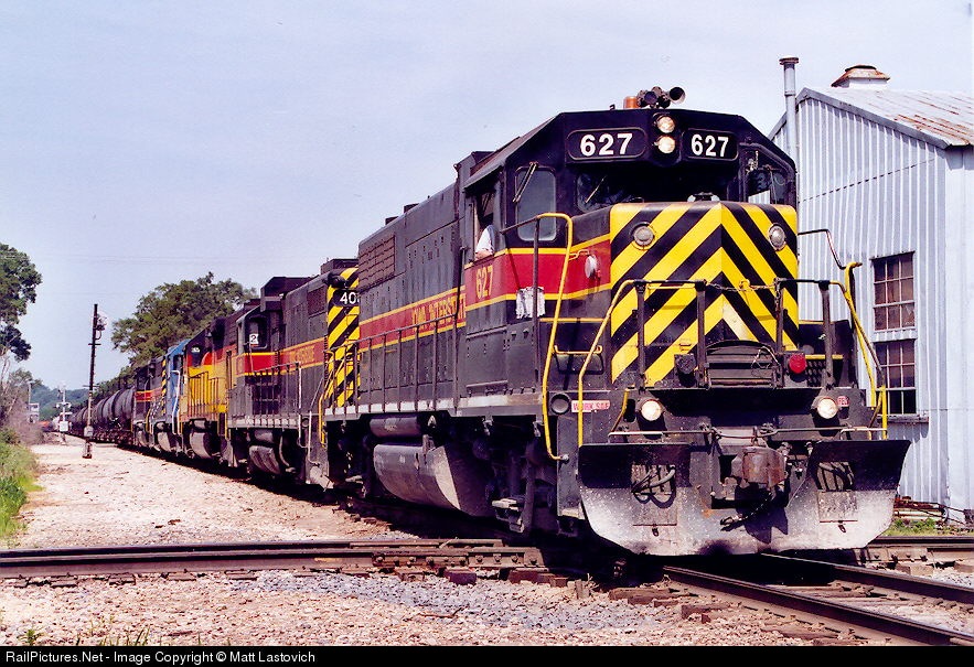 IAIS 627 passes the IRN's shop & crosses their track.