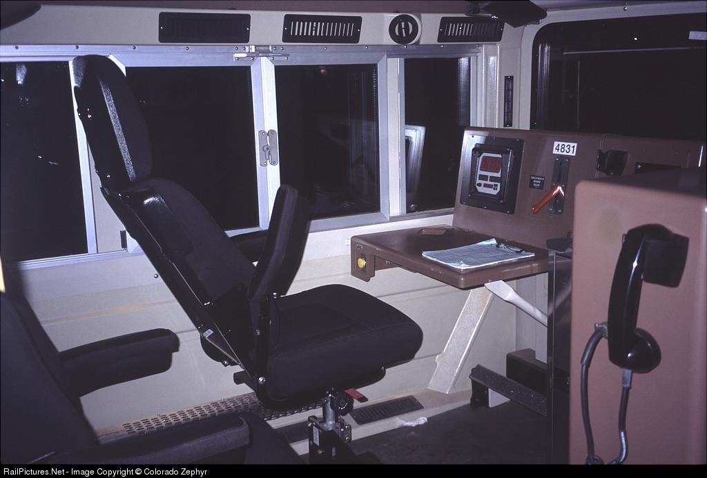 Unit was enroute on UP to the Transportation Technology Center, Pueblo, CO. Conductor side with high back seats. Speedometer readout in front of conductor seat.