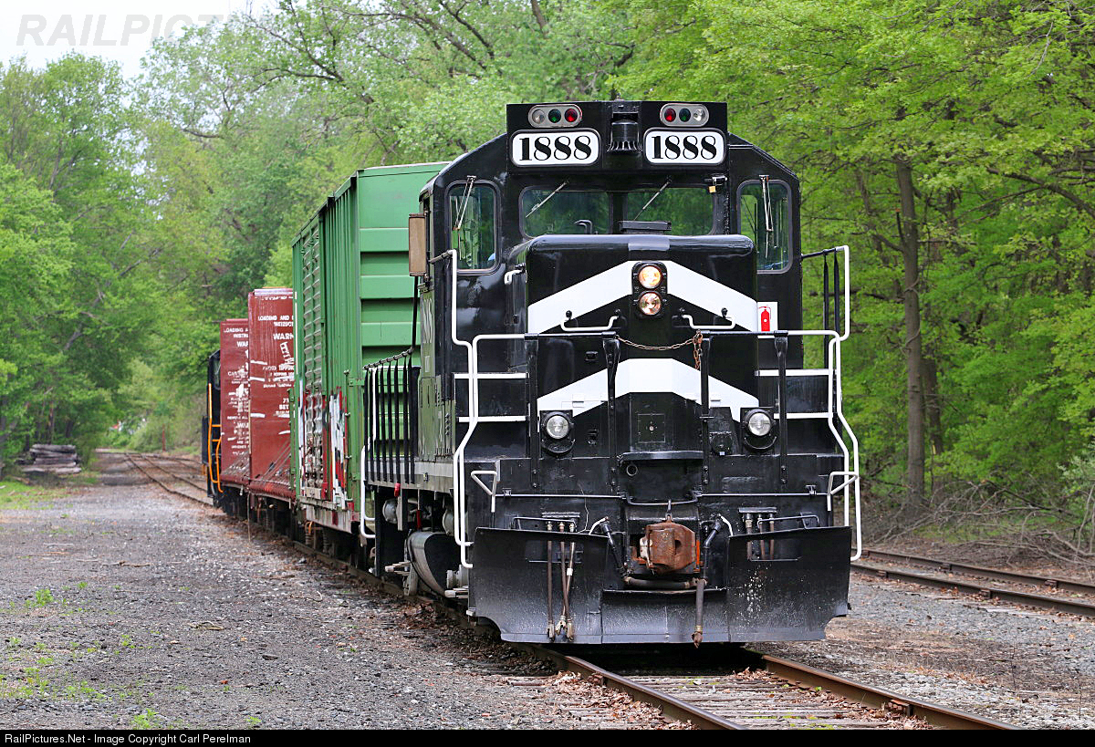 | Dover & Rockaway River DO-2 has three empty lumber cars in tow. BR&W GP9m 1888 is trailing the consist, while GP10 732 leads the consist. |