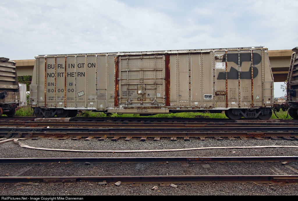 In 1989, Burlington Northern received a series of freight cars called “Boppers” built by Bethlehem Johnstown. These experimental aluminum cars had both side doors and roof hatches, and could be used as both covered hoppers or boxcars, hence the name “Boppers” for these boxhopper cars. They didn’t quite work out as intended, and in 2002, BNSF donated three of the cars to the Lake Superior Railroad Museum. Prototype No. 800000 sits between sister cars 800004 and 800001 at Duluth, Minnesota, on June 10, 2016.