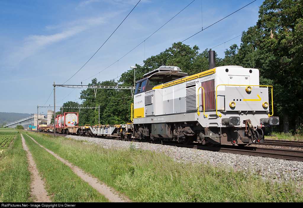The diesellocomotive Bm 840 426 of Swiss Rail Trafic is pulling the local freight train 69139 from Rekingen (AG) to the Limmattal shunting Yard.