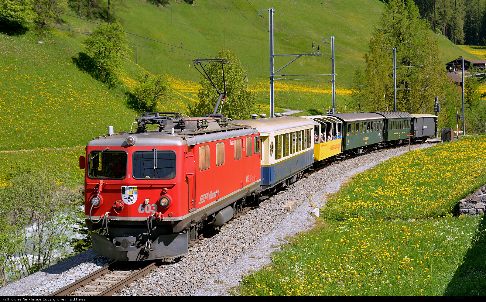 | From May to October 2018 Rhätische Bahn (RhB) offers the unique daily opportunity to travel from Davos to Filisur and back on a historical train compilation from the 1920s. Ge 4/4 I 603 reaches Davos Glaris on the way to Filisur. |