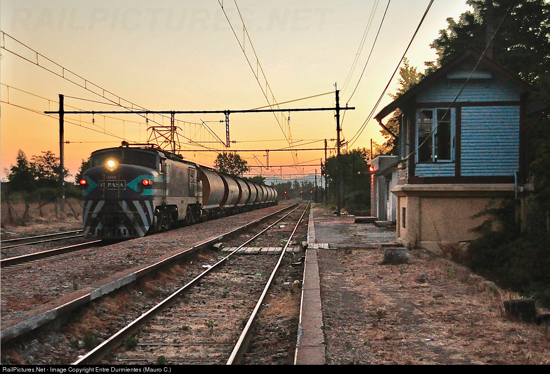 E-32 electric locomotive built in Italy by Breda Marelli and Gruppo Aziende Italiane consortium, with FEPASA X-10 Talca - Santiago, passes through the old Camarico Station, in Maule district. E-3217 is a electric locomotive of Italian origin, built in 1960 in Milan, Italy, especially for the railroads of Chile. They were 34 locomotives in operation in the early 1960s for State Railroads "FFCC del E". Wonderful machines of 3600 HP. He became known both in Chile and abroad as the "Sophia Loren", for its beautiful curves and Italian origin. Currently there are only three locomotives operational and still survive the lack of spare parts: Two operated by FEPASA for freight - cargo transport (E-3208 and E-3227), and E-3209 which is the only under operational conditions has state rail company ("EFE" - Empresa de Ferrocarriles del Estado) and used for special services. The locomotive of the photo (E-3217) is currently out of service, deregistered.