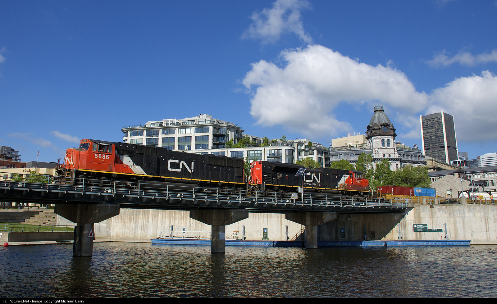 CN 5686 & CN 8957 lead CN 149 over the Lachine Canal as this intermodal train exits the Port of Montreal.