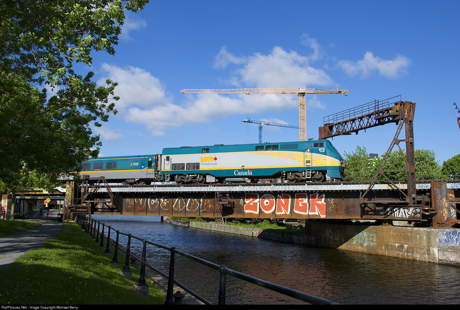 VIA 915 leads VIA 33 from Quebec City over the Lachine Canal a bit south of downtown Montreal.