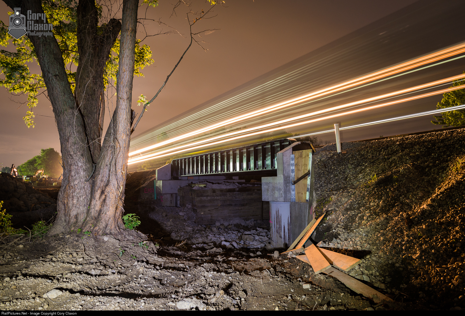 A bridge on NS' New Castle District was recently replaced as it former concrete culvert-like bridge had snapped in two in the middle after many decades of service. There was previously a 25mph slow order until NS crews expertly replaced this bridge in just 24 hours; demolishing the old bridge structure took the longest about of time, according to crews on the ground. Here, a rack train streaks overhead with two CSX units in the lead - on their way to Ft. Wayne, Ind.