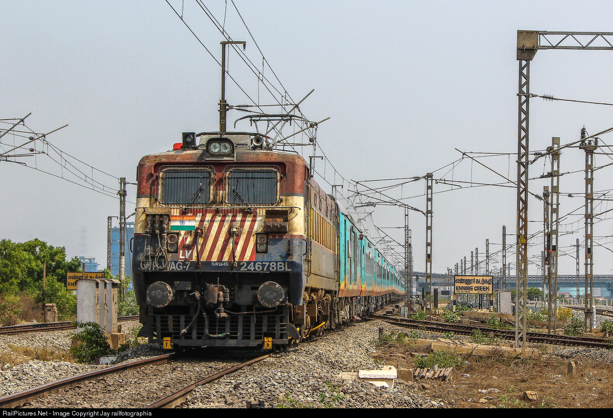 Newly introduced Bhagat Ki Koti - Tambaram Humsafar Express powered by VALSAD WAG-7 crossing Ennore creek
