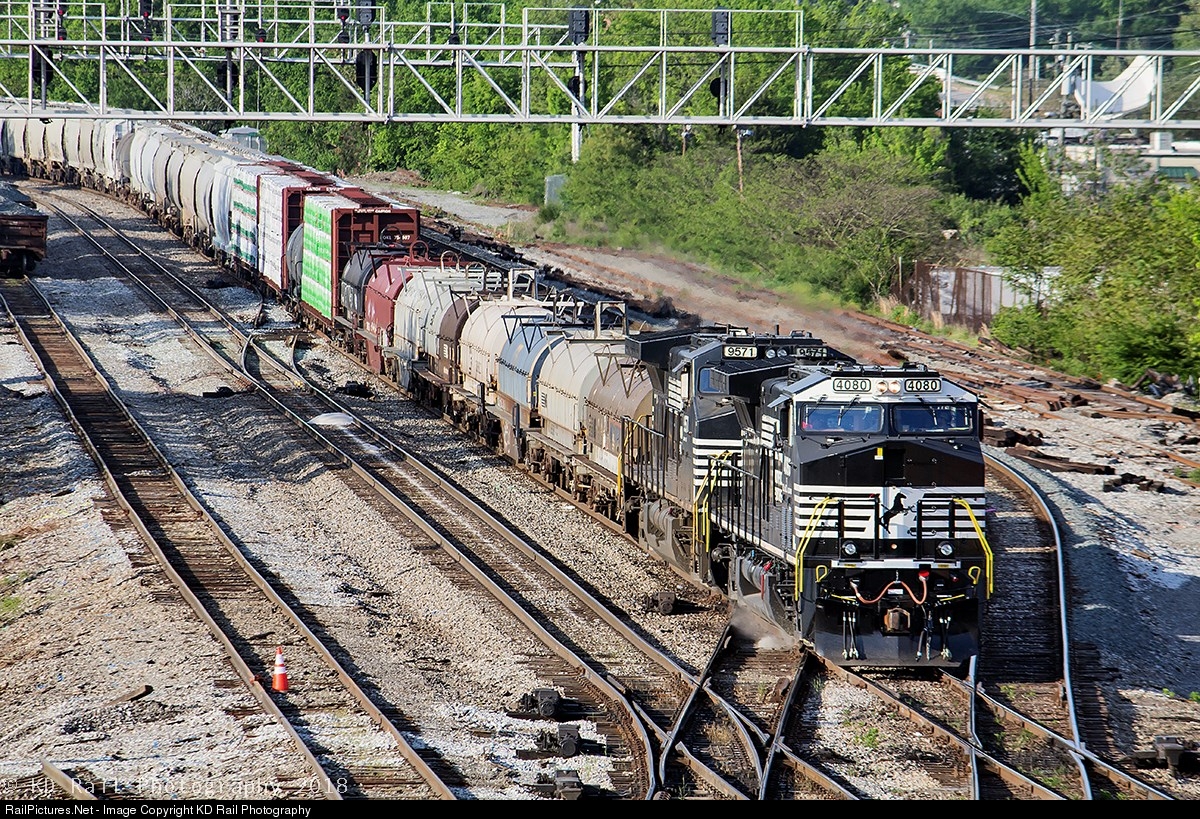NS 107 (Chattanooga,TN-Sheffield,AL) is slowly cutting through the NS controlled 23rd St. Interlock (MP-338.2/ 243.1 A) on the Chattanooga Terminal/AGS North-End. The Sheffield bound general freight is getting ready to meet inbound NS 738 which is approaching on the main 2 track. The freight will run to Wauhatchie, and get on the CSX Chattanooga Sub for Stevenson, AL where the train will get on the NS Memphis East-End for Sheffield, AL