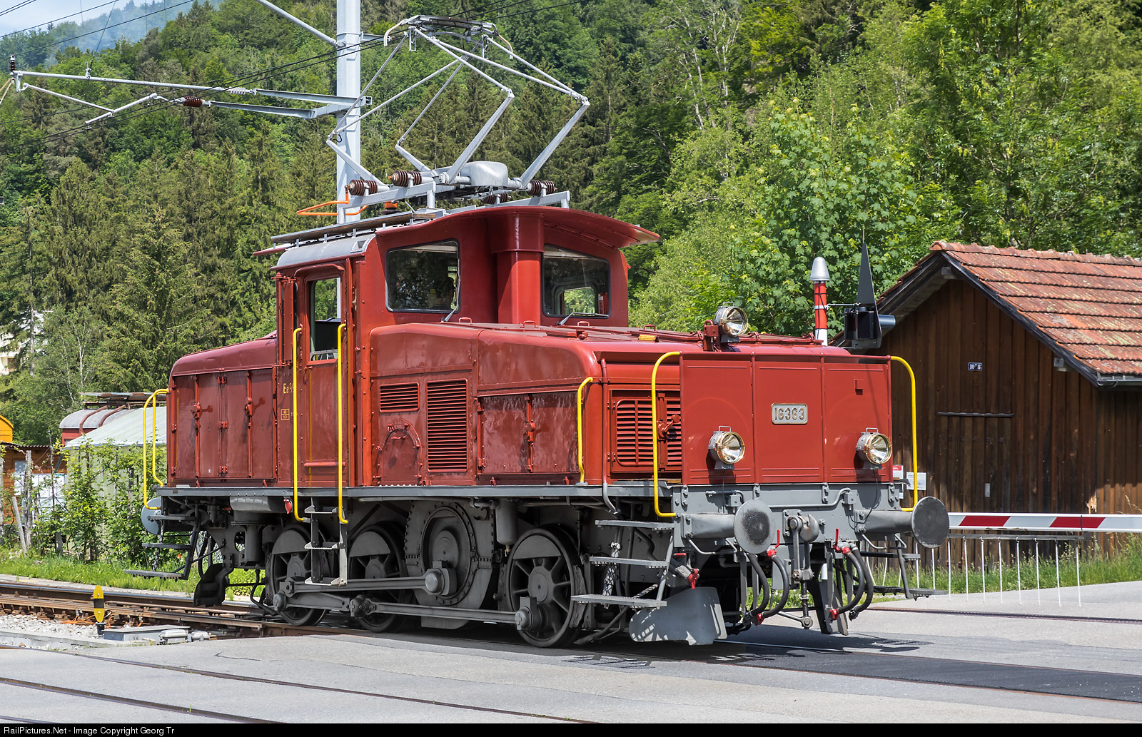 | The Ee 3/3 # 16363 was built in 1939 by SLM and BBC for the SBB, for shunting in middle and large stations. Since 2011 operational for the DVZO in the appearance of about the year 1950. The locomotive is seen in Bauma, where she is based. |