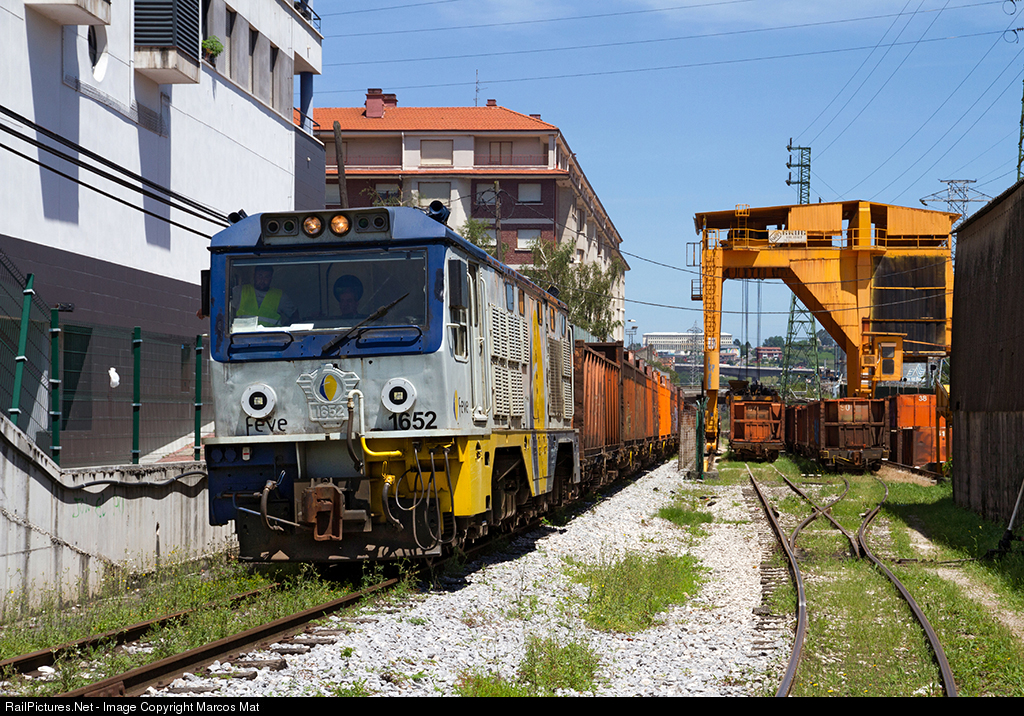 This freight with sand from Arija is one of my most beloved trains but lately I have a little abandoned ... And it is not for lack of interest on my part since the problem is that it has almost completely disappeared from our tracks and if before circulated daily by the branch Irauregi-Lutxana now does it once a week ... and not every week. On the day I took the photo I received a providential warning informing me of this circulation, since to approach here guided only by the "hunter instinct" serves for nothing. Curiously, the locomotive was dedicated to perform innumerable maneuvers in the beach of tracks of Lutxana with what the train left much later of its habitual time, allowing me to make this photo (that normally would suppose a horrible "Black Face") in which you can see the train and the loading platform of the company "Arenas de Arija".