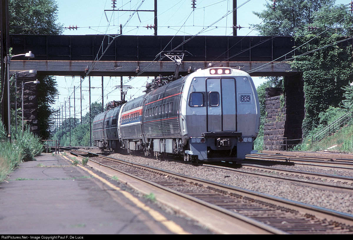 Metro Club Car #889, the highest numbered Metroliner car in the fleet, leads a northbound at close to, if not over, the century mark at North Elizabeth, NJ.