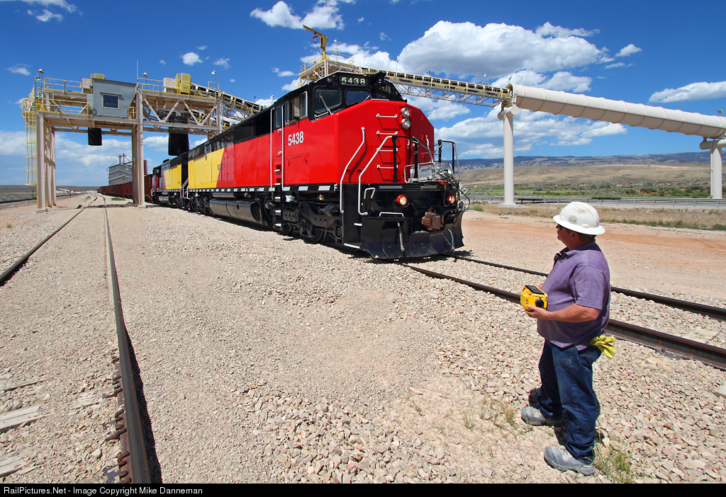 Montana Limestone Company’s Jim Beard remotely operates the company’s colorful pair of EMD SD50Fs as they pull an empty cut of hoppers under the limestone loader at Warren, Montana, on a beautiful June 24, 2016. These former Canadian National cowls operate on a private railroad of two spurs and 18,000 feet of trackage along BNSF’s Casper Subdivision.