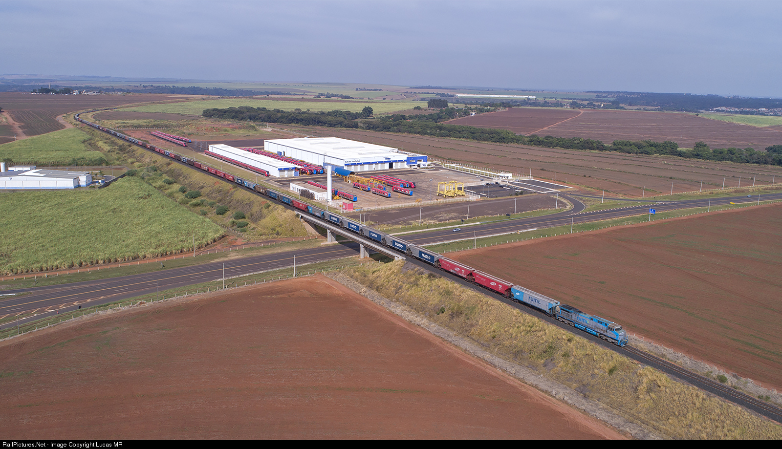 Southbound loaded photographed at Araraquara Railroad Loop, with Rotem facilities at background.