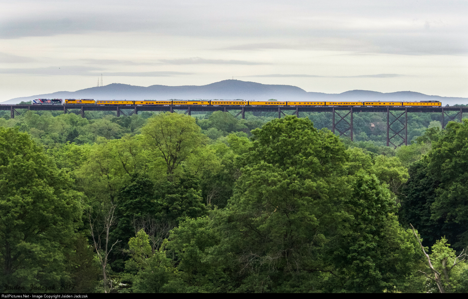 Union Pacific's Office Car Special, running as NS H70 on a special run north from Croxton Yard to Campbell Hall, NY, crosses the Moodna Viaduct with UP 1943 leading.