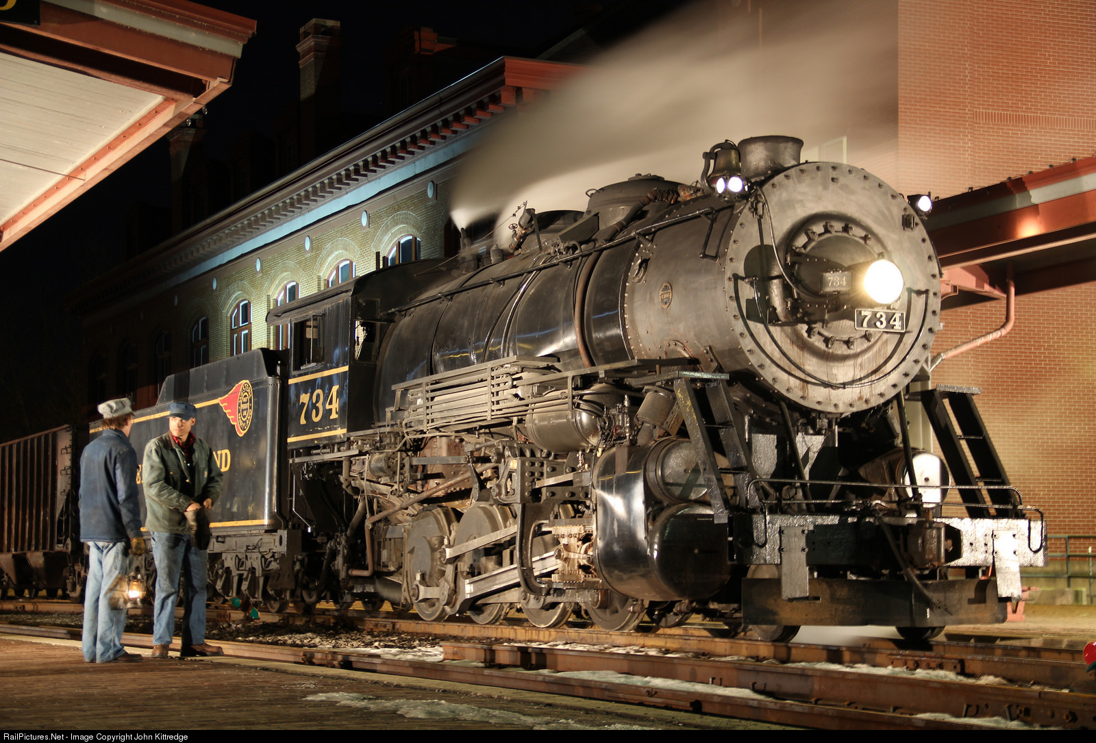 Western Maryland Scenic Railroad 734 poses, after a long day of storming the the line to the delight of photographers, at the former Western Maryland Depot in Cumberland. This was one of the engines last runs and unfortunately, my only time seeing her before she was taken out of service. Hopefully "Mountain Thunder" as she's affectionally known, will return one day.