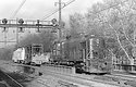 Amtrak RS3 116 leads the wire train through North Elizabeth, NJ, on its way to or from a catenary maintenance job. Amtrak acquired 45 Penn Central RS3s of PRR, NYC, and NH ancestry in 1976 for yard and work train service when it assumed ownership of most of the Northeast Corridor at Conrail's startup; the 116 was ex-Pennsy.